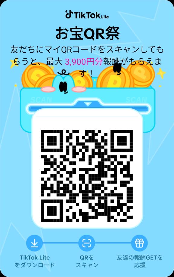 TikTokライトのお宝QR祭イベントはQRコードをスキャンしてもらうことでポイントが獲得できます。